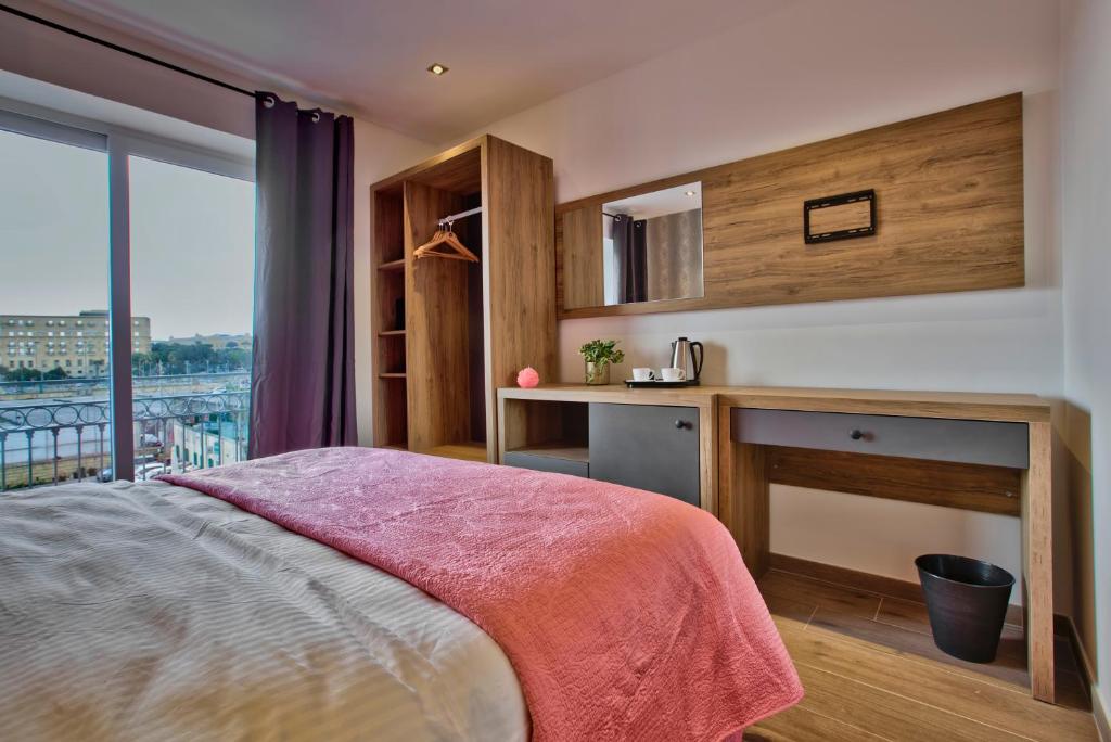 Indulge in sophistication in our Deluxe Room at Tritoni Boutique Hotel, located in the heart of Floriana, a step away from Valletta entrance. Designed with discerning travelers in mind, this spacious and elegantly appointed room offers a serene sanctuary amidst the bustling city streets. Relax in comfort on a plush king-sized bed, unwind in the modern ensuite bathroom, and take advantage of thoughtful amenities for your convenience. With its stylish décor and inviting ambiance, our Deluxe Room provides the perfect retreat for a memorable stay in Valletta.