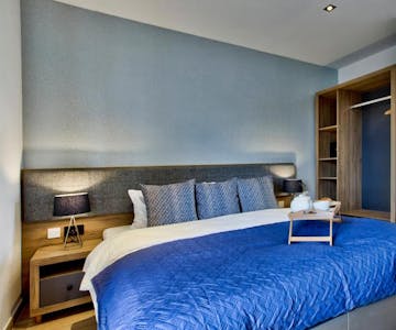 Indulge in sophistication in our Deluxe Room at Tritoni Boutique Hotel, located in the heart of Floriana, a step away from Valletta entrance. Designed with discerning travelers in mind, this spacious and elegantly appointed room offers a serene sanctuary amidst the bustling city streets. Relax in comfort on a plush king-sized bed, unwind in the modern ensuite bathroom, and take advantage of thoughtful amenities for your convenience. With its stylish décor and inviting ambiance, our Deluxe Room provides the perfect retreat for a memorable stay in Valletta.